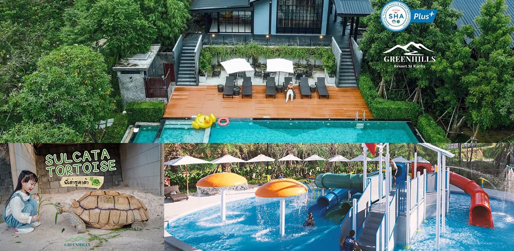 ต้อนรับหน้าร้อนสำหรับที่พัก Greenhills Resort Si Racha รีสอร์ทท่ามกลางขุนเขา และสถานที่จัดงานที่แสนพิเศษ ด้วยบรรยากาศธรรมชาติ ที่นี่มีพื้นที่ให้บริการทั้ง Indoor และ Outdoor ในการจัดกิจกรรมต่างๆ พาครอบครัวพร้อมลูกน้อยมาปล่อยพลังสดใส กับ Play Space พื้นที่ความสุขของทุกคน สนุกกับ Water Park เล่นได้ทุกวัย มีทั้งโซนเด็กและผู้ใหญ่ มีกิจกรรม Pedal Go-Kart ความยาวกว่า 300 เมตร สูดอากาศบริสุทธิ์ พร้อมรับความสดชื่นจากต้นไม้ มีมุมพาลูกน้อยสัมผัสกับความน่ารักของพี่เต่าซูคาต้า สายพันธุ์นี้ เชื่องง่าย ไม่ดุแน่นอน! ที่นี่มีห้องพักหลายแบบ อย่าง Deluxe สำหรับ 3 ท่าน หรือ Pool Villa ที่รองรับสูงสุดถึง 8 ท่าน สิ่งอำนวยความสะดวกครบ อยู่ไม่ไกลจากกรุงเทพฯ อีกด้วย เข้าไปดูรายละเอียดได้ที่ >> Greenhills Resort Si Racha หรือโทร 099-325-9097