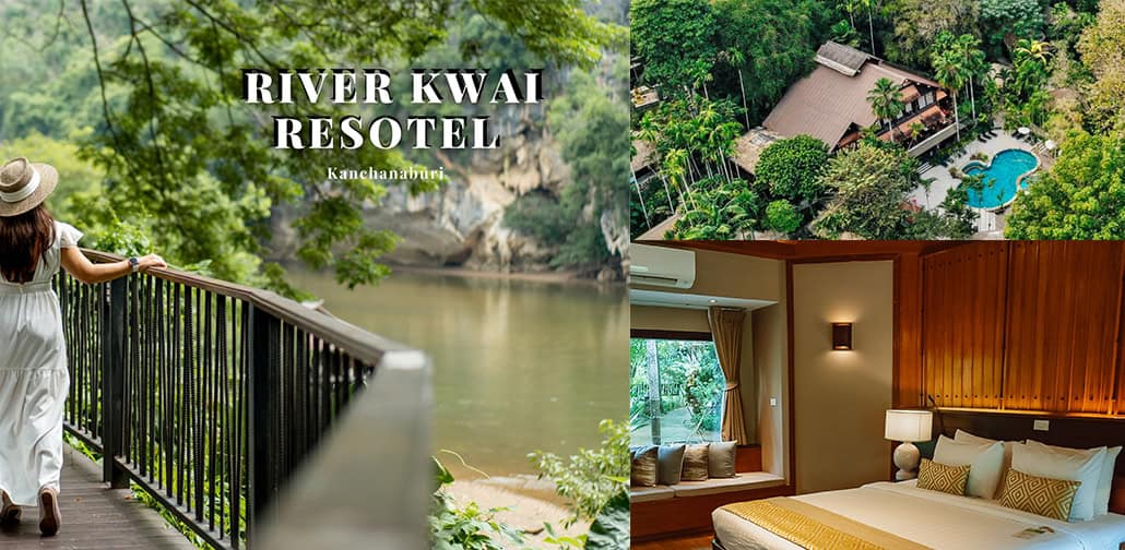 ริเวอร์แคว รีโซเทล สุดยอดบูติครีสอร์ทอิงธรรมชาติ อยู่ริมแม่น้ำแควน้อย อ.ไทรโยค จ.กาญจนบุรี สัมผัสความสวยงามของธรรมชาติของแม่น้ำและภูเขาอันสวยงาม และ หน้าผาหินสูงชันที่สวยงาม มีความสะดวกสบายด้วยห้องพักแบบบังกะโลที่แยกเป็นหลังๆ เพื่อความเป็นส่วนตัวสูงสุด โดยใช้แนวสถาปัตยกรรมแนว Tropical ออกแบบมาเพื่อความกลมกลืนไปกับสภาพแวดล้อมและเสริมความสะดวกสบายอย่างเต็มที่ พร้อมให้สัมผัสกับธรรมชาติอย่างเต็มอิ่มด้วยพื้นที่แบบเนินสูงต่ำสลับกันไปมา สามารถมองเห็นแม่น้ำแคว ต้นไม้ และหน้าผาหินอันสวยงาม โดยห้องพักมีระเบียงส่วนตัวให้ได้ออกมาชื่นชมกับวิวสีเขียวของต้นไม้ได้ตลอดเวลา การเดินทางมาที่รีสอร์ต ต้องต่อเรือที่ท่าเรือพุตะเคียน ระหว่างนั่งเรือชมวิว 2 ฝั่งของแม่น้ำแคว สวยอลังตา เหมาะแก่การหนีร้อนมากมีสระว่ายน้ำไว้ว่ายคลายร้อน บริเวณโดยรวบมีต้นไม้ใหญ่ ร่มรื่น เย็นสบาย เข้าไปดูรายละเอียดได้ที่ >> River Kwai Resotel ริเวอร์เเคว รีโซเทล กาญจนบุรี รีสอร์ท หรือโทร 081-734-5238
