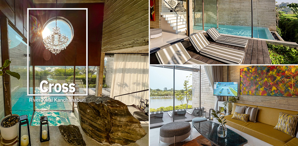 เปิดประสบการณ์การพักผ่อนที่ Cross River Kwai ตั้งอยู่ติดริมแม่น้ำระยะหัวโค้งของแม่น้ำพอดี ใช้ชีวิตแบบพรีเมี่ยมกับห้อง Fallingwater Pool Villa ที่ผสมผสานกับจุดเด่นของจังหวัดกาญจนบุรี ให้ความใกล้ชิดกับธรรมชาติ ทุกห้องมองเห็นวิวทิวทัศน์แม่น้ำแควน้อยแบบพาโนรามา ห้องนี้สามารถรองรับผู้เข้าพัก 4-5 ท่าน ภายในห้องพักกว้างมากๆ มีน้ำตกที่อยู่ชั้นบนของห้องพักเชื่อมต่อกับสระว่ายน้ำ ช่วงกลางวันมีแดดส่องถึงระเบียงริมสระพร้อมชิลล์ไปกับการนอนอาบแดด ภายในห้องพักมีความเรียบหรูของตกแต่งภายในให้กลิ่นอายของจังหวัดโดยแท้ พร้อมด้วยสิ่งอำนวยความสะดวกที่ครบครัน