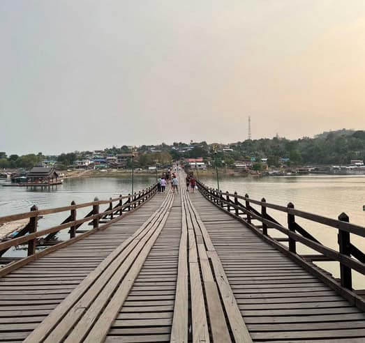สะพานมอญเป็นอีกที่ที่ไม่พูดถึงไม่ได้เลย ตั้งอยู่ตำบลหนองลู เป็นสะพานไม้ที่ยาวที่สุดในประเทศไทย ซึ่งมีความยาวถึง 850 เมตร และเป็นสะพานไม้ยาวเป็นอันดับ 2 ของโลกรองจากสะพานไม้อูเบ็งในประเทศพม่าใช้ข้ามแม่น้ำซองกาเลีย สะพานแห่งนี้สร้างขึ้นโดยดำริของ หลวงพ่ออุตตมะ เจ้าอาวาสวัดวังก์วิเวการาม ในปี พ.ศ. 2529 จนแล้วเสร็จเมื่อปี พ.ศ. 2530 เพื่อให้คนไทย กระเหรี่ยงและมอญใช้ในการสัญจรไปมาหาสู่กัน