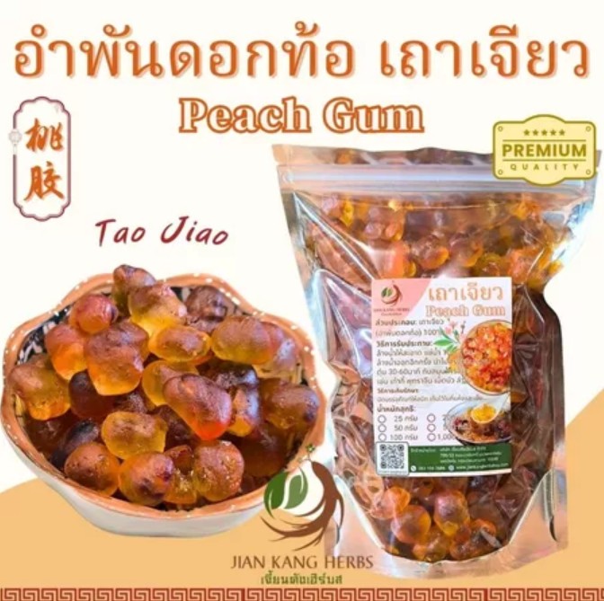 เถาเจียวเเห้ง พีชกัม หรืออำพันดอกท้อง ยางไม้ธรรมชาติจากต้นพีช ที่สามารถทานได้ อุดมไปด้วยคอลลาเจน และสารอาหารมากมาย เหมาะสำหรับคนดูเเลผิว