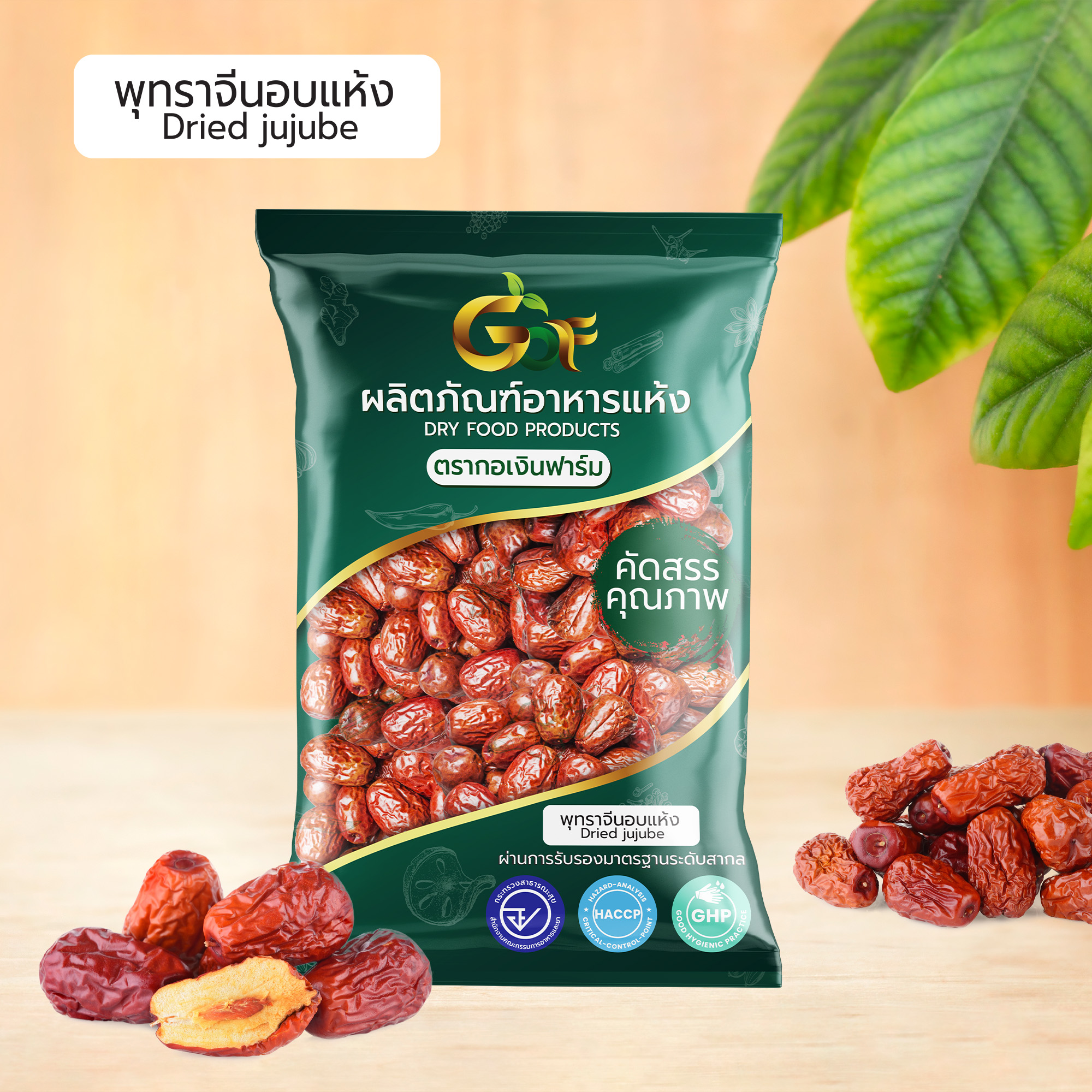 พุทราจีนอบแห้ง (Dried Jujube) ตรากอเงินฟาร์ม ส่งตรงจากโรงงาน คัดสรรอย่างดี สะอาด ปลอดภัย มาตรฐาน อย. อบในพาราโบล่าโดมขนาดใหญ่ ป้องกันฝุ่น ป้องกันแมลง และสิ่งปนเปื้อนได้อย่างดี ไม่มีเมล็ด สามารถรับประทานได้เลย สิ่งที่ทำให้พุทราจีนอบกรอบแบรนด์นี้น่าสนใจคือการผสมผสานรสชาติและเทคโนโลยีการผลิตที่ทันสมัย ทำให้ได้ของว่างที่มีทั้งรสชาติและคุณประโยชน์ในเวลาเดียวกัน นอกจากนี้ ยังพกพาสะดวก จะทานเล่นในช่วงบ่ายหรือเป็นของว่างในระหว่างการเดินทางก็ได้เหมือนกัน