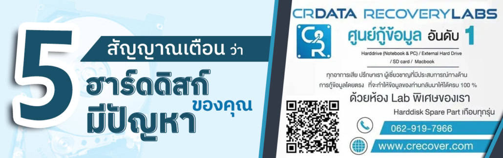 หวังว่าบทความข้างต้น จะเป็นประโยชน์ในการสังเกตความผิดปกติของฮาร์ดดิสก์เพื่อให้ทุกคนได้เตรียมพร้อมในการดูแลฮาร์ดดิสก์ในขั้นตอนต่อไปค่ะ หากPCของคุณขัดข้องหรือแฮงค์บ่อยครั้ง ส่วนประกอบฮาร์ดดิสก์ของคุณอาจเสื่อมสภาพ วิธีการทั้งหมดที่กล่าวมาข้างต้นมีความน่าเชื่อถือและเป็นแค่แนวทางในการสังเกตเท่านั้น แต่วิธีที่ดีที่สุดคือปรึกษาจากบริษัทกู้คืนข้อมูลที่เชื่อถือได้ เช่น CR Data Recovery ศูนย์กู้ข้อมูลอันดับ 1